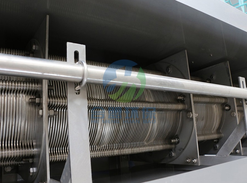 叠螺污泥脱水机是运用了螺杆挤压原理,通过螺杆直径和螺距变化产生的强大挤压力,以及游动环和固定环之间的微小缝隙,实现对污泥进行挤压脱水的一种新型固液分离设备